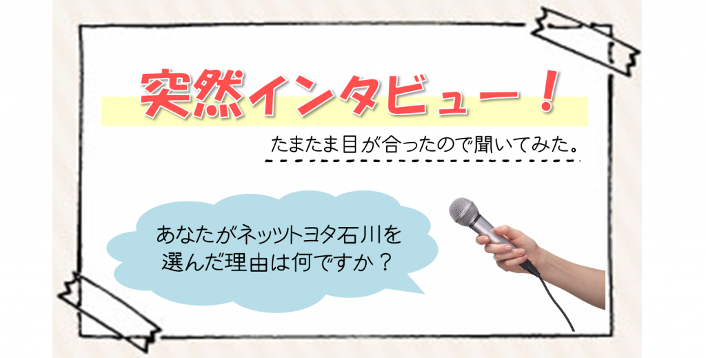 学生の頃からトヨタの営業マンに憧れがあって、就活もディーラーを中心に考えてたんですけど、ネッツトヨタ石川は会社そのものと、採用担当の方の雰囲気が良くて入社を決めました!
