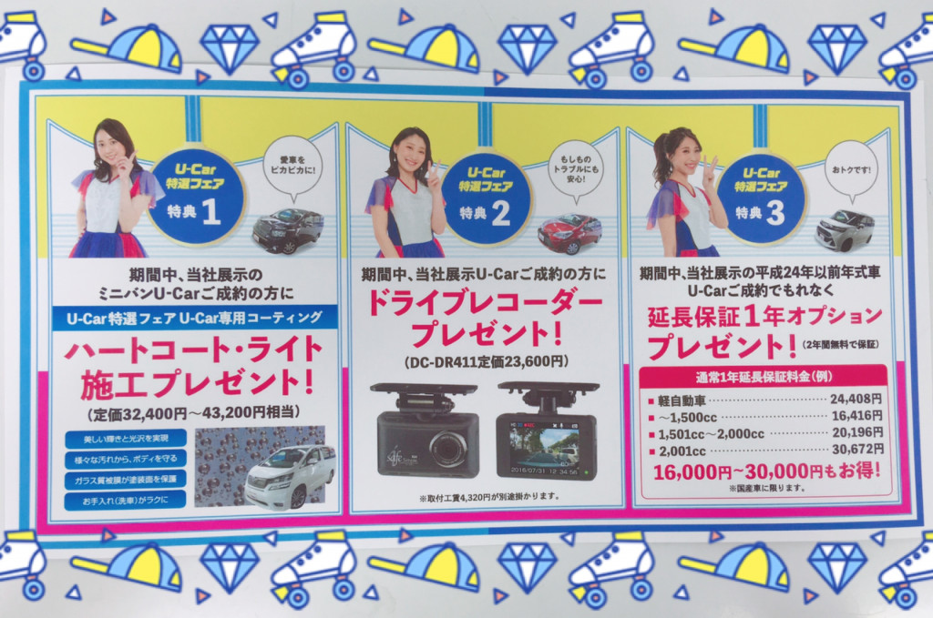 イベント期間中にU-Carご成約のお客様にはハイパーメガメガお得な特典がついてきます☆