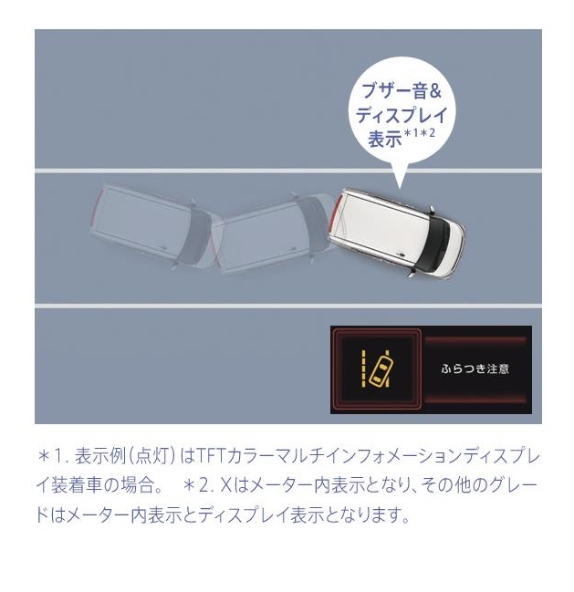 さらに、路側逸脱警報やふらつき警報なども加わり安全・安心装備が充実。