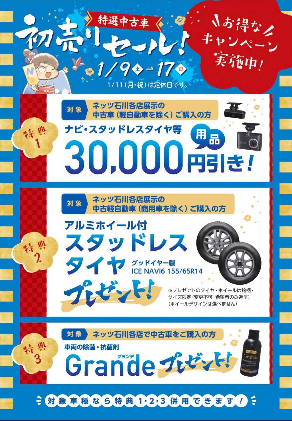 ▶開催期間 1月9日(土)~17日(日)初売りセールの特典は・・・