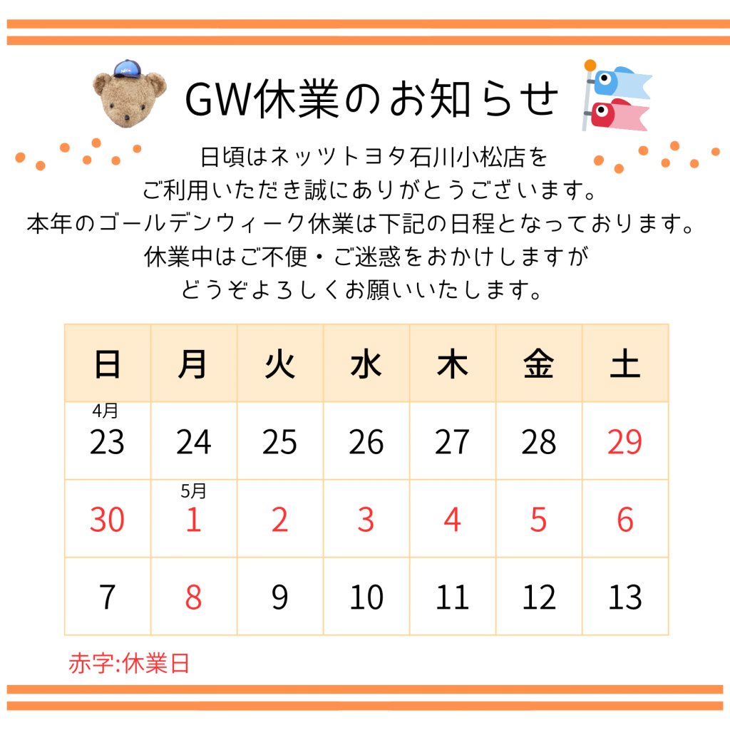 こんにちは!ネッツトヨタ小松店です。