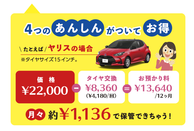 預かり料+2回のタイヤ交換込みのお値段になっております!