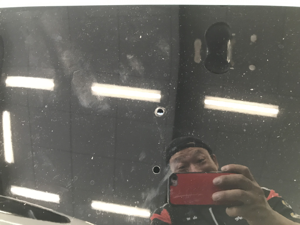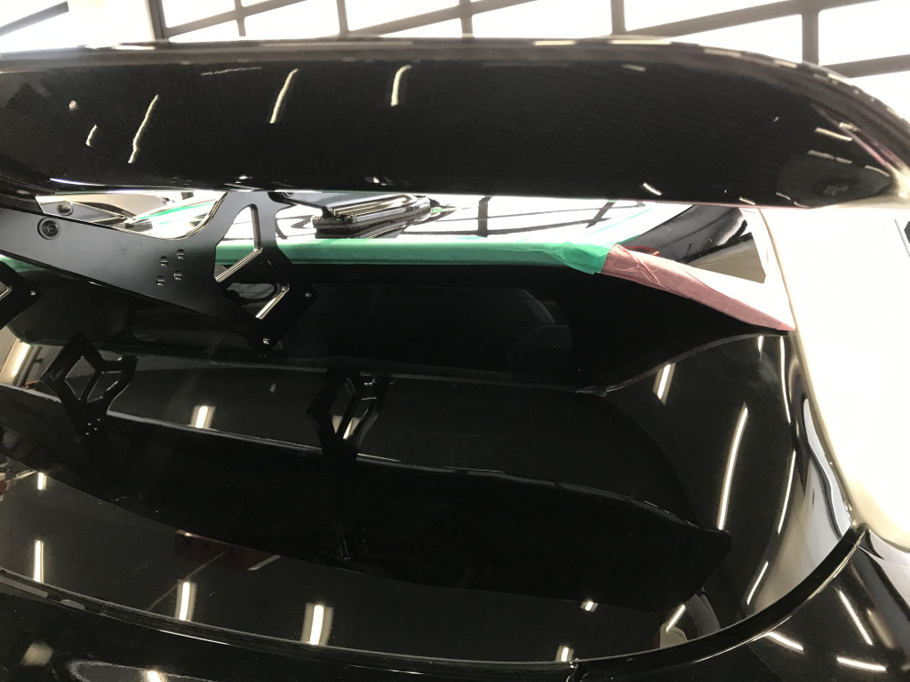 まずついているスポイラーを取り外して型紙に沿って穴をあけます。。。