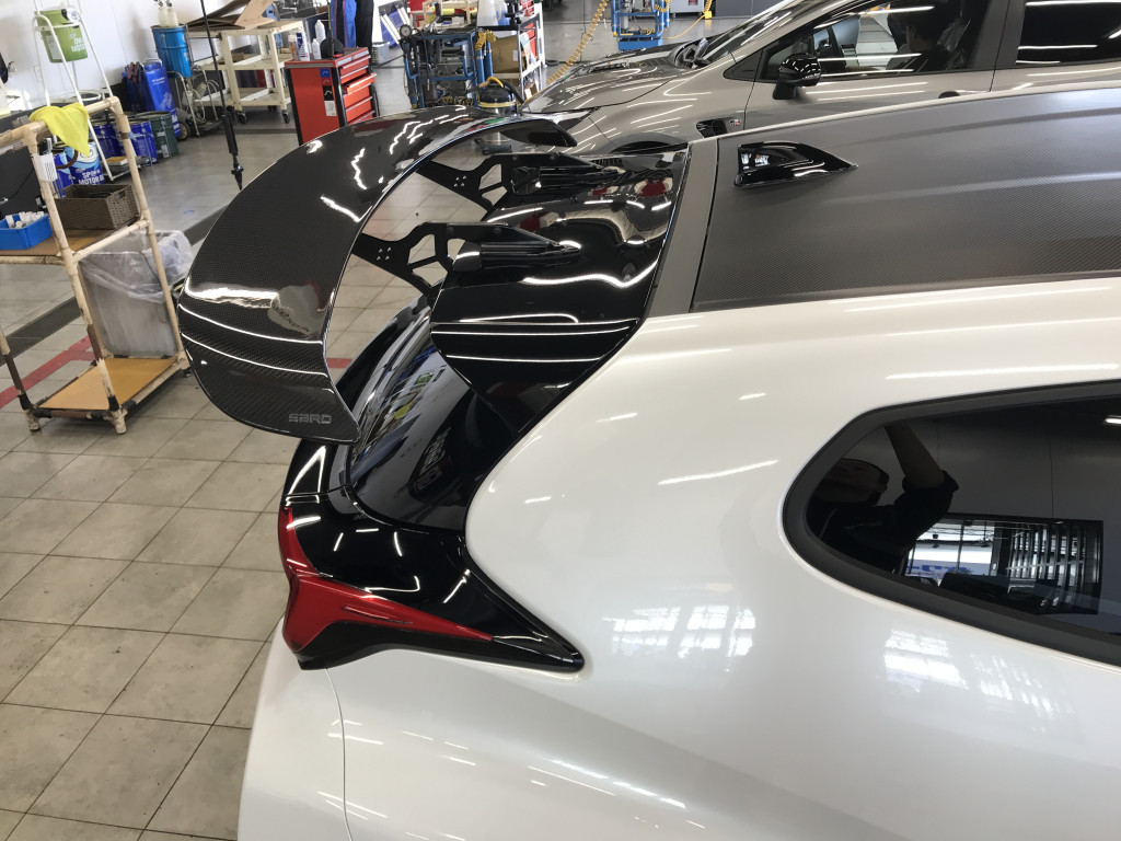 バックドアとリヤスポイラーとはさみナットで締め付けです。
