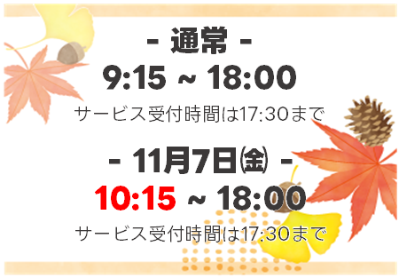社内研修のため営業時間を変更させていただきます。