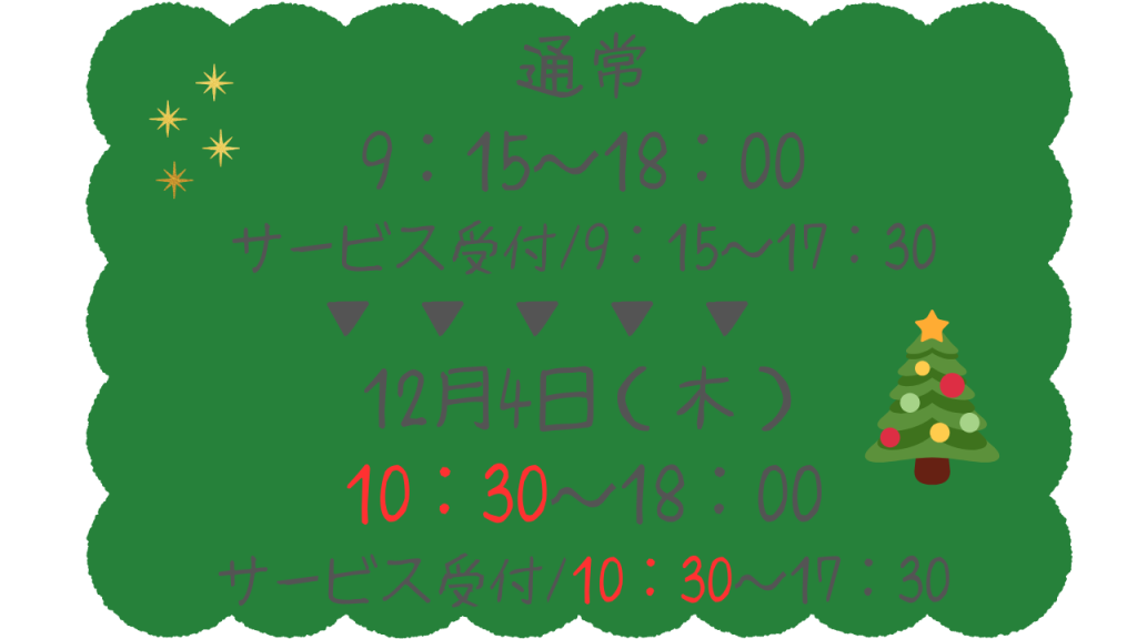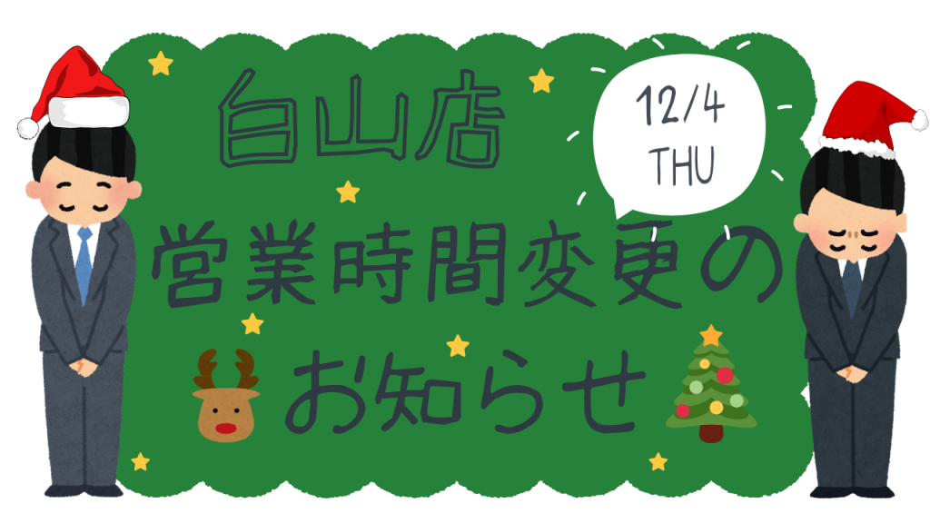 【白山店】 12月4日(木)営業時間変更のお知らせ