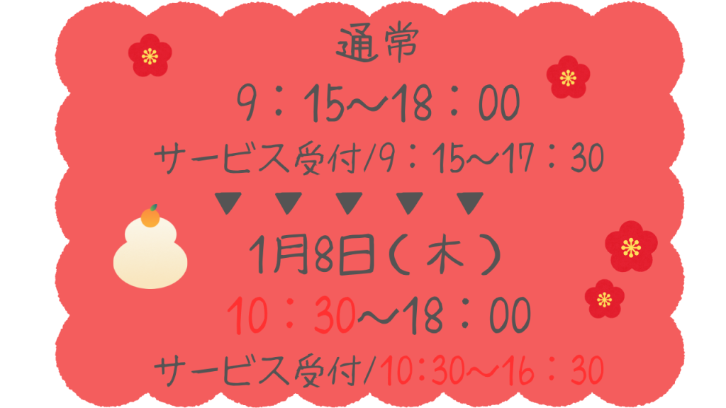 【白山店】 1月8日(木)営業時間変更のお知らせ