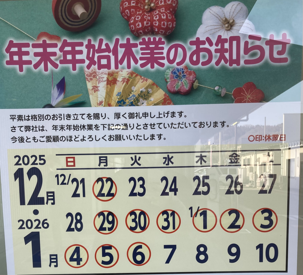 対応は1月7日(水)以降とさせていただきますのでご了承願います。