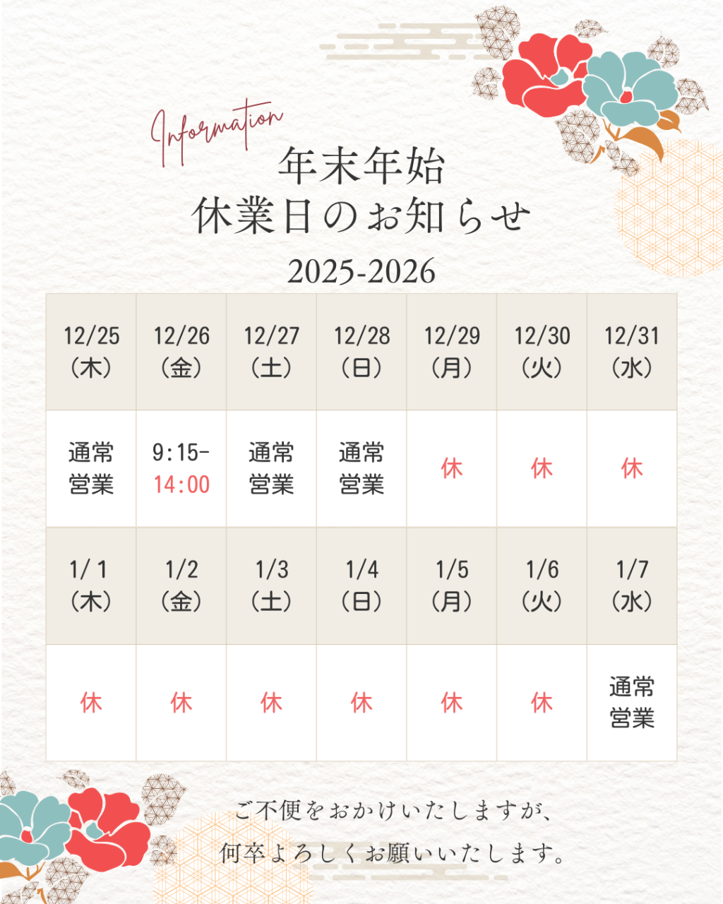 ご対応は1月7日(水)以降とさせていただきますのでご了承願います。