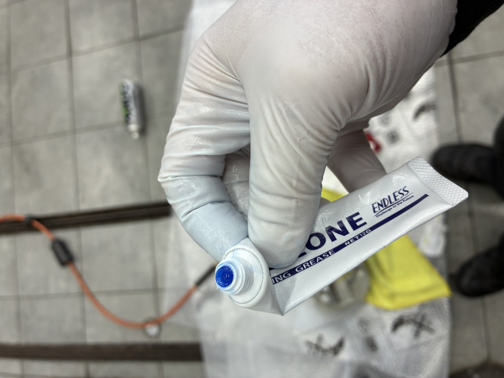 リペアキットに付属のシリコングリース。いつも使っているシリコングリースより硬めです。