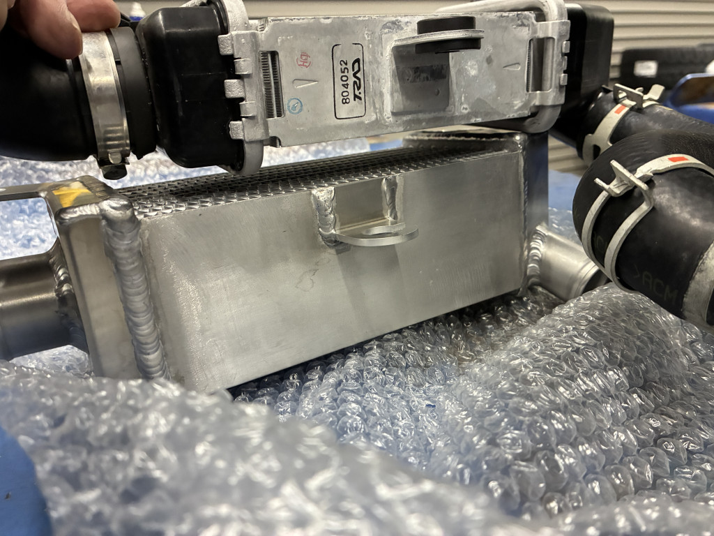 〇全ての部品に軽量で熱交換性に優れるアルミニウムを採用し、冷却効果を高めたインタークーラーです。