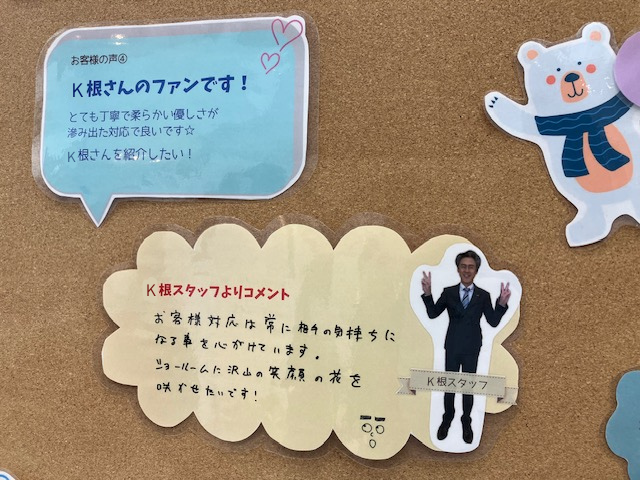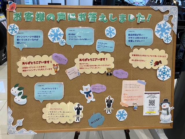 QRアンケートから頂きましたお客様の声と、その回答を紹介したボードです!