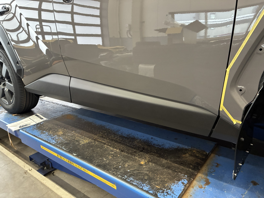 オフロードで思わずヒットしやすいボディサイド下部をガード。さらにアウトドアギアをイメージしたデザインによってサイドビューに本格SUVらしい逞しさを追加します。