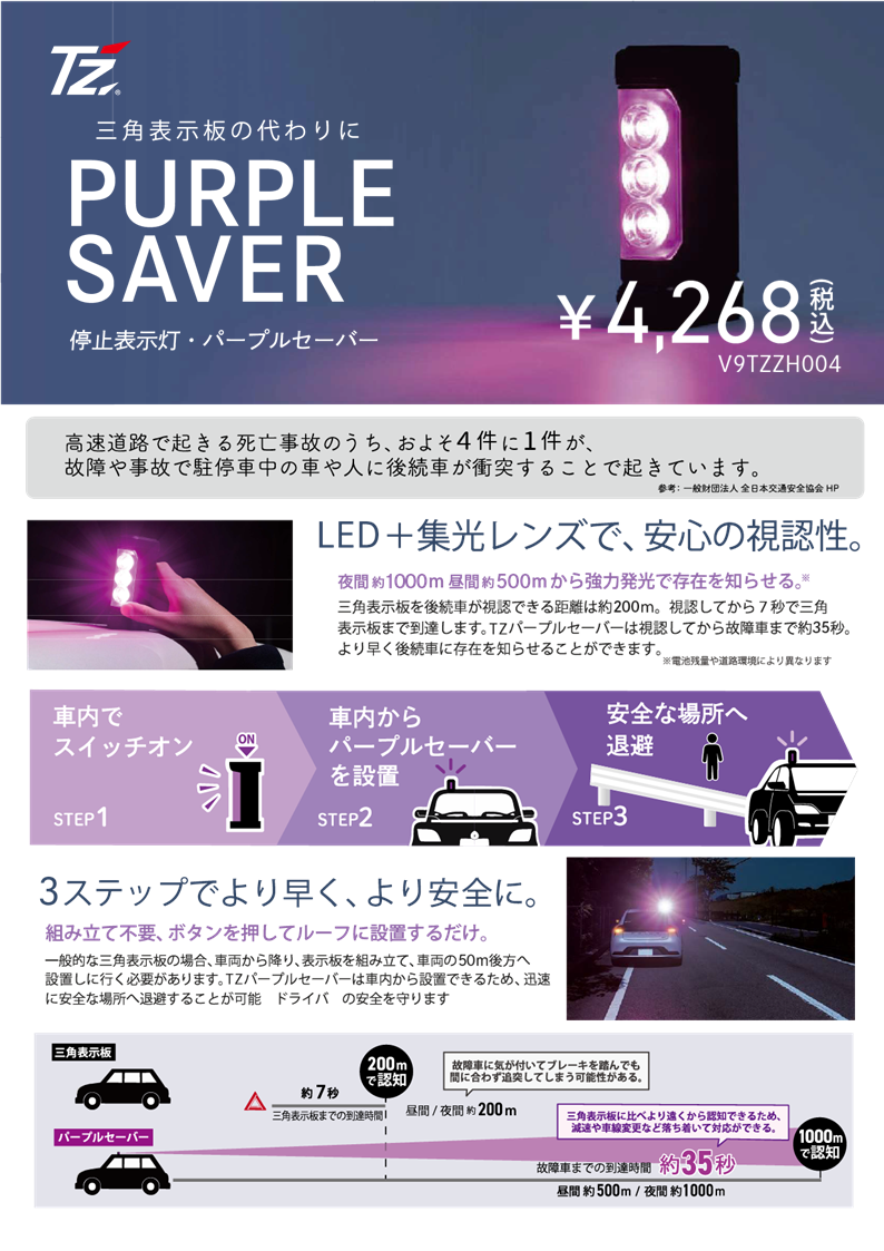 停車した車両の存在をいち早く知らせることが、自分も周りも守る第一歩。