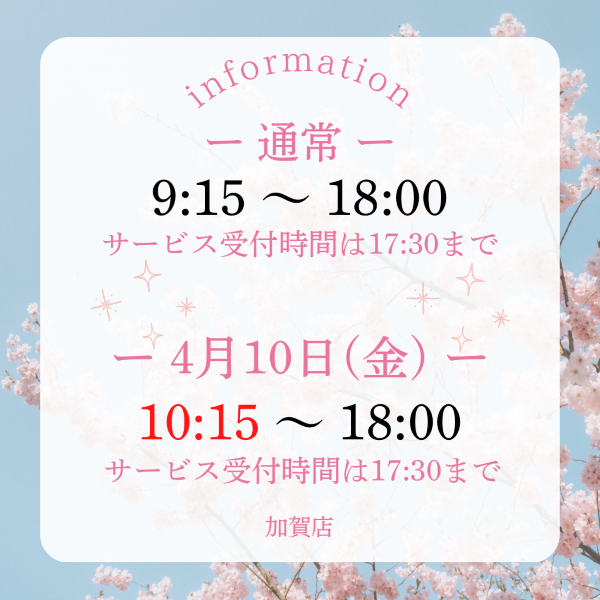 【加賀店】営業時間変更のお知らせ