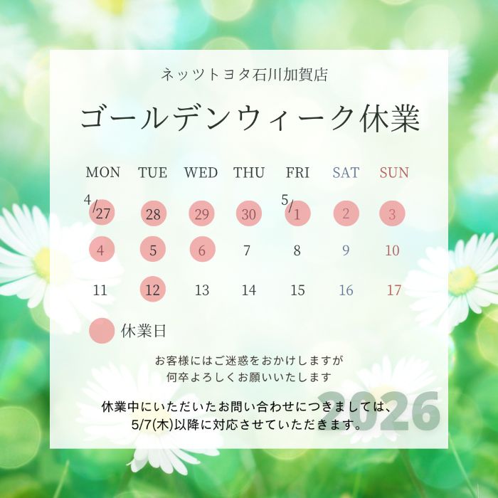 【加賀店】GW休業のお知らせ