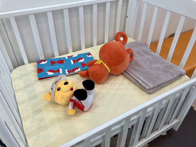 ※キッズルームで読書をしながら、ごろごろするレンキチとクマキチ
