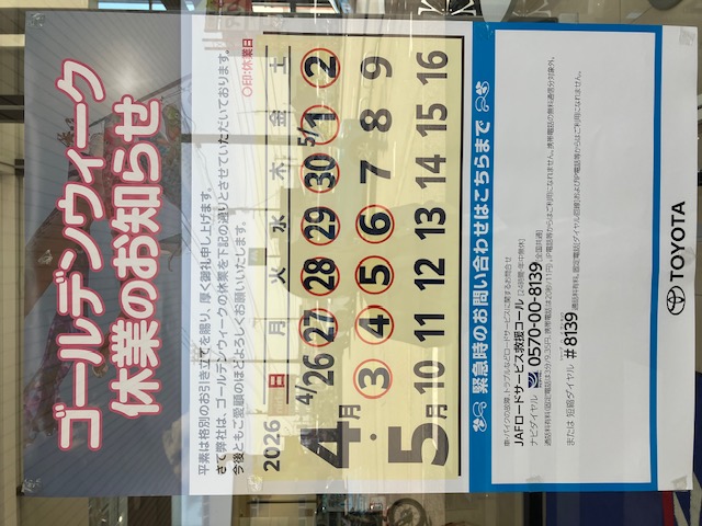 本年のゴールデンウィーク休業は以下の日程となっております。