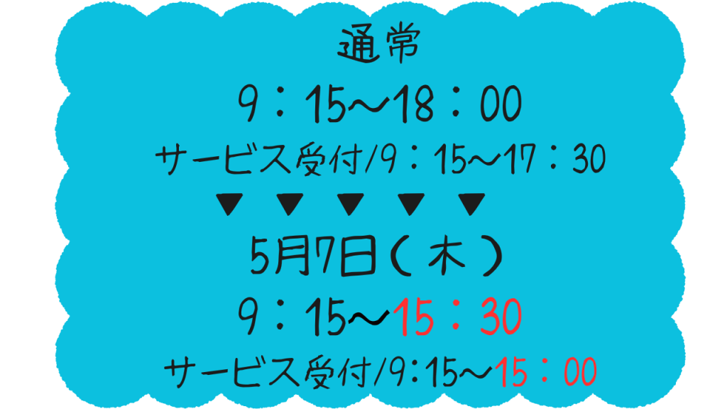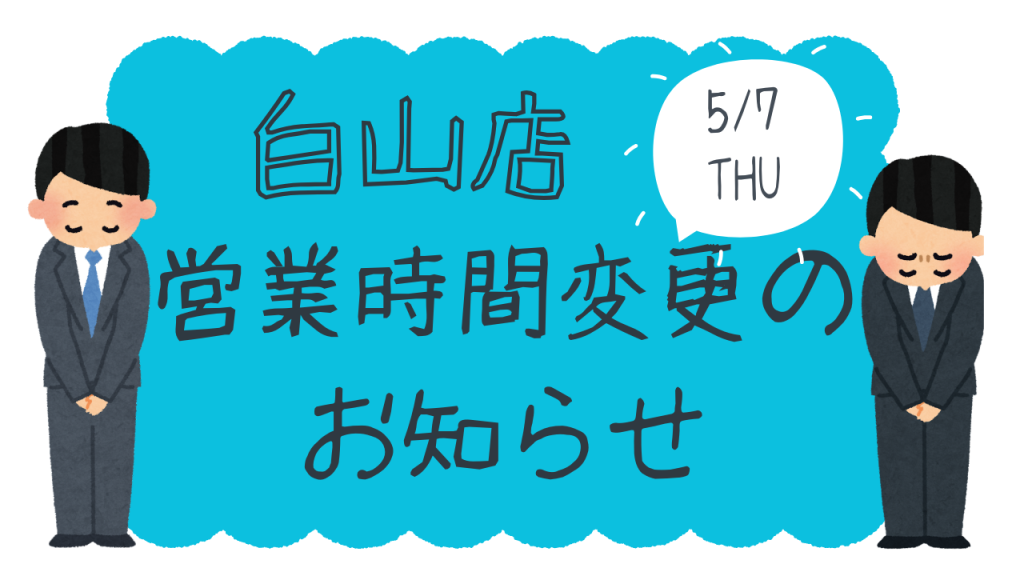 【白山店】5月7日(木)営業時間変更のお知らせ