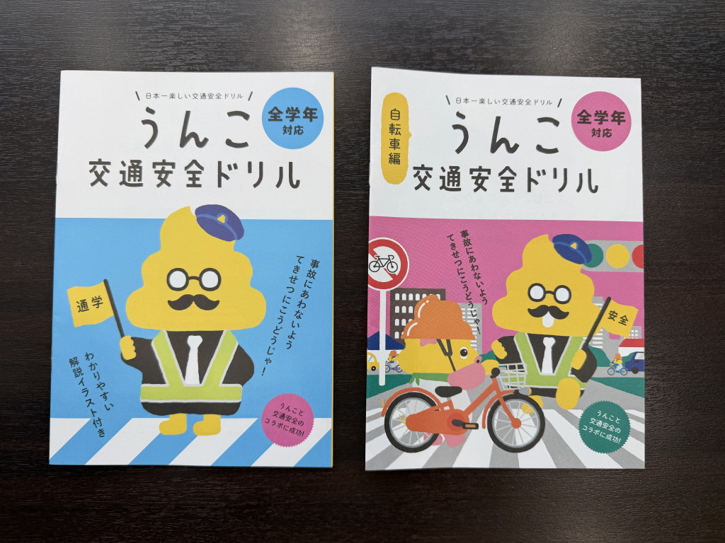 お子様と一緒に楽しく学べる『うんこ交通安全ドリル』を配布しております!!