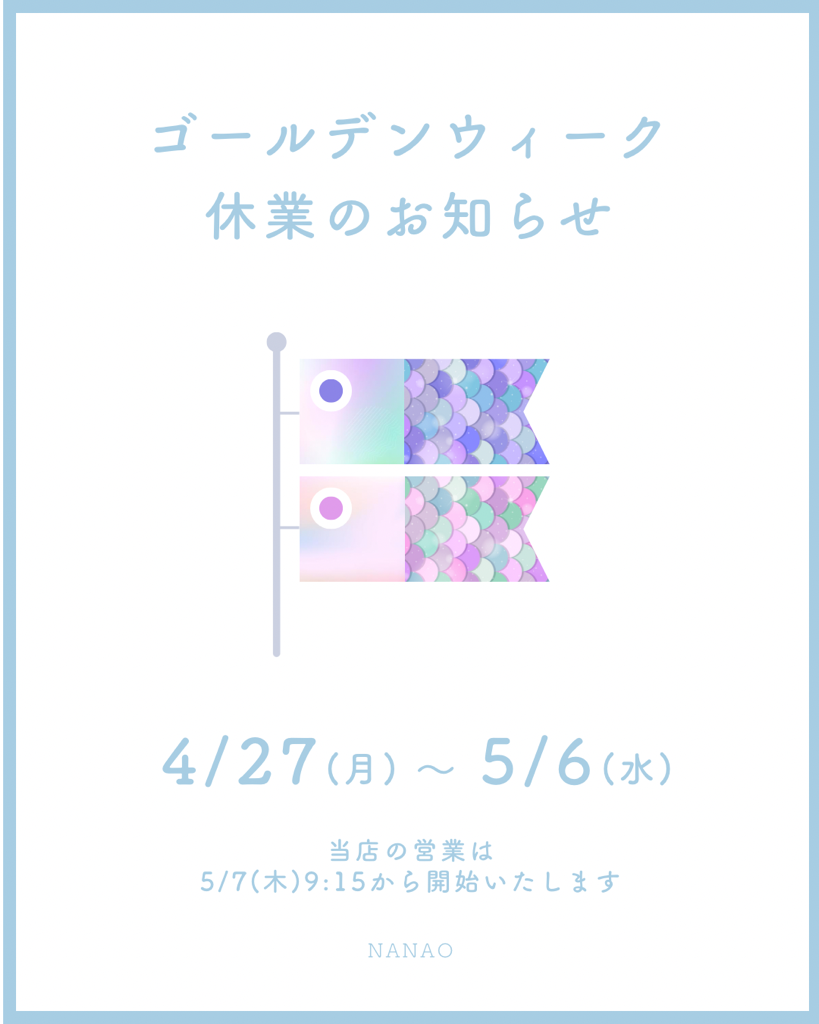【七尾店】4月26日(日)営業時間の変更とゴールデンウィーク休業のお知らせ