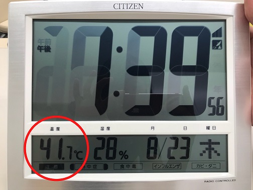 本日はなんと全国ニュースでかほく市や津幡町の気温が41℃になっていました!!