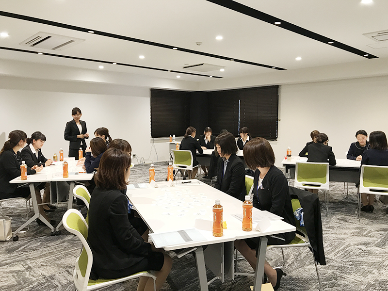 入社後、半年経過時に、職場で学んだことを振り返る集合研修を行っています。同期の絆づくりにも役立っています。